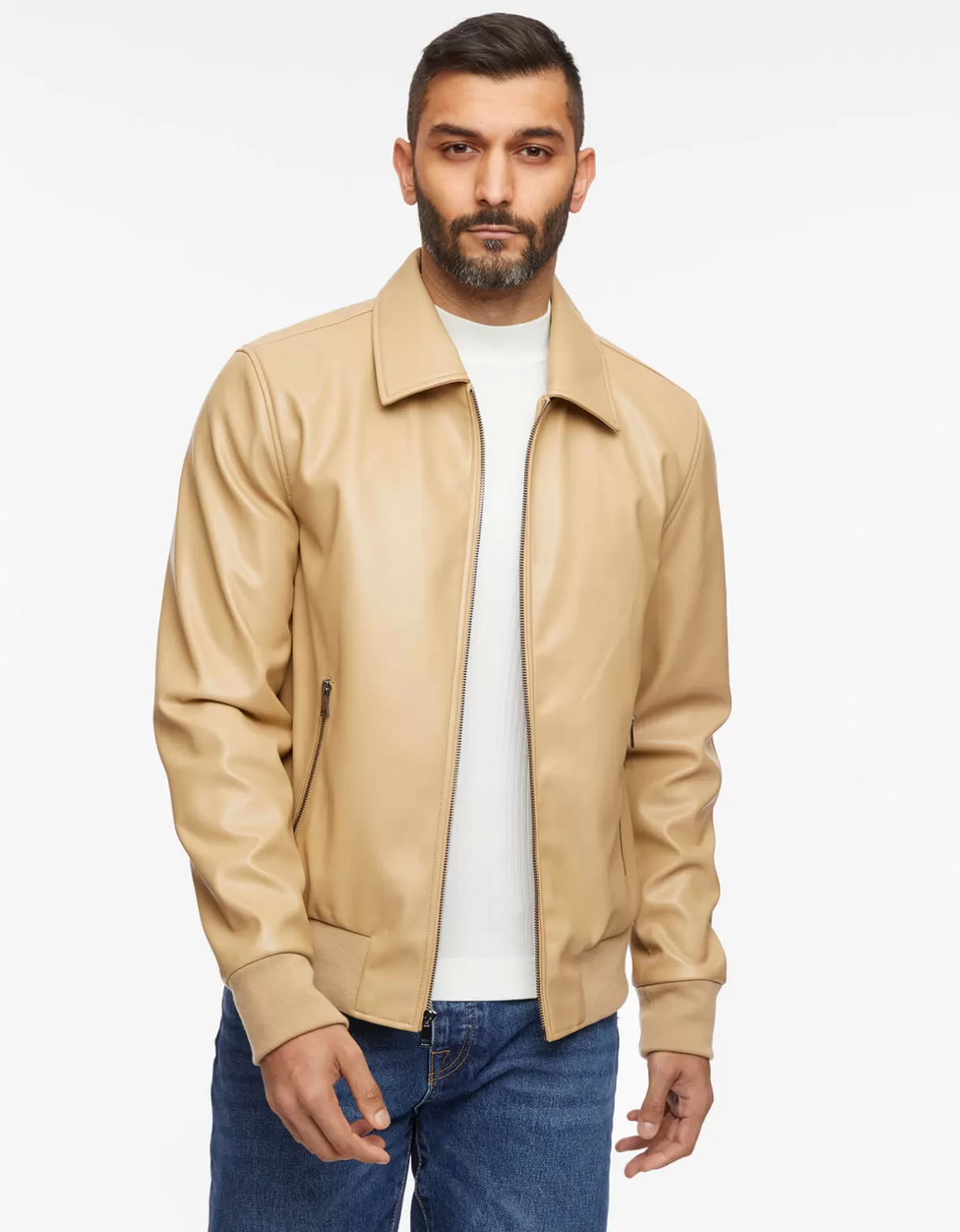 This Classic Men’S Jacket Has Eco-Friendly Updates: It’S Crafted In Our Sumptuously Soft Vegan Leather. Elevate A Casual Day Or Complement A Dressed-Up Look With Its Tailored Fit. Ribbed Trim And Zipper Pockets Finish The Refined Design.