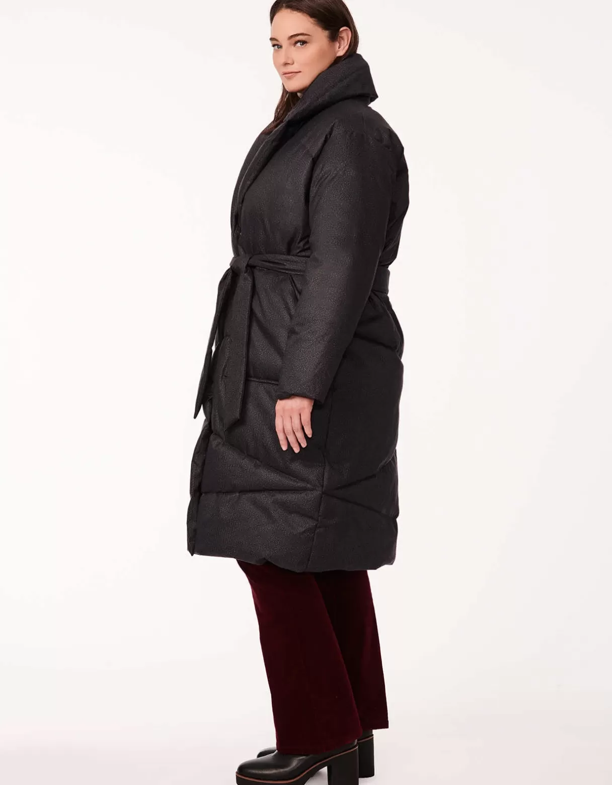Women Bernardo Fashions Heavy Winter Coats>District Drama Long Belted Puffer Coat – Curve