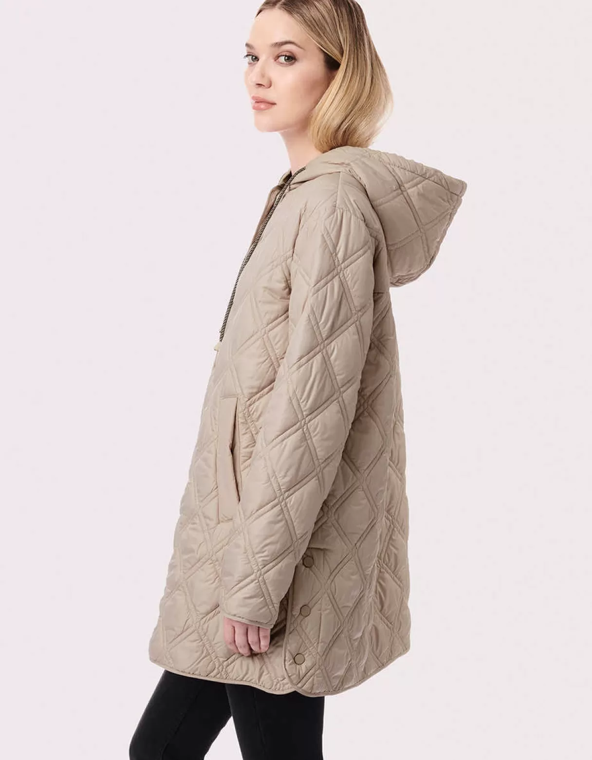 Diamond-Shaped Stitching Defines The Quilted Pattern On This Lightweight Mid-Length Puffer Jacket. The Drawstring Hood K…