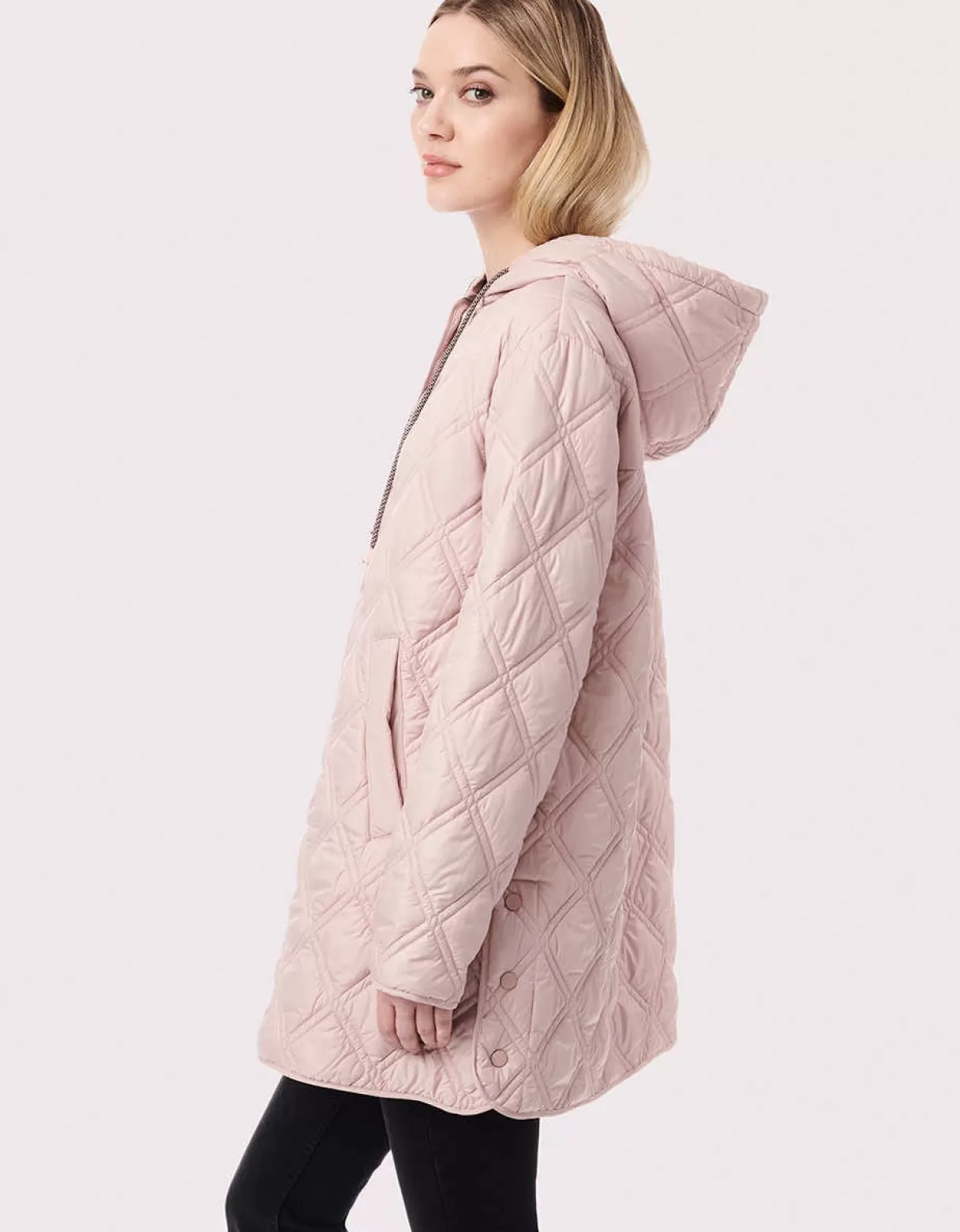 Diamond-Shaped Stitching Defines The Quilted Pattern On This Lightweight Mid-Length Puffer Jacket. The Drawstring Hood K…