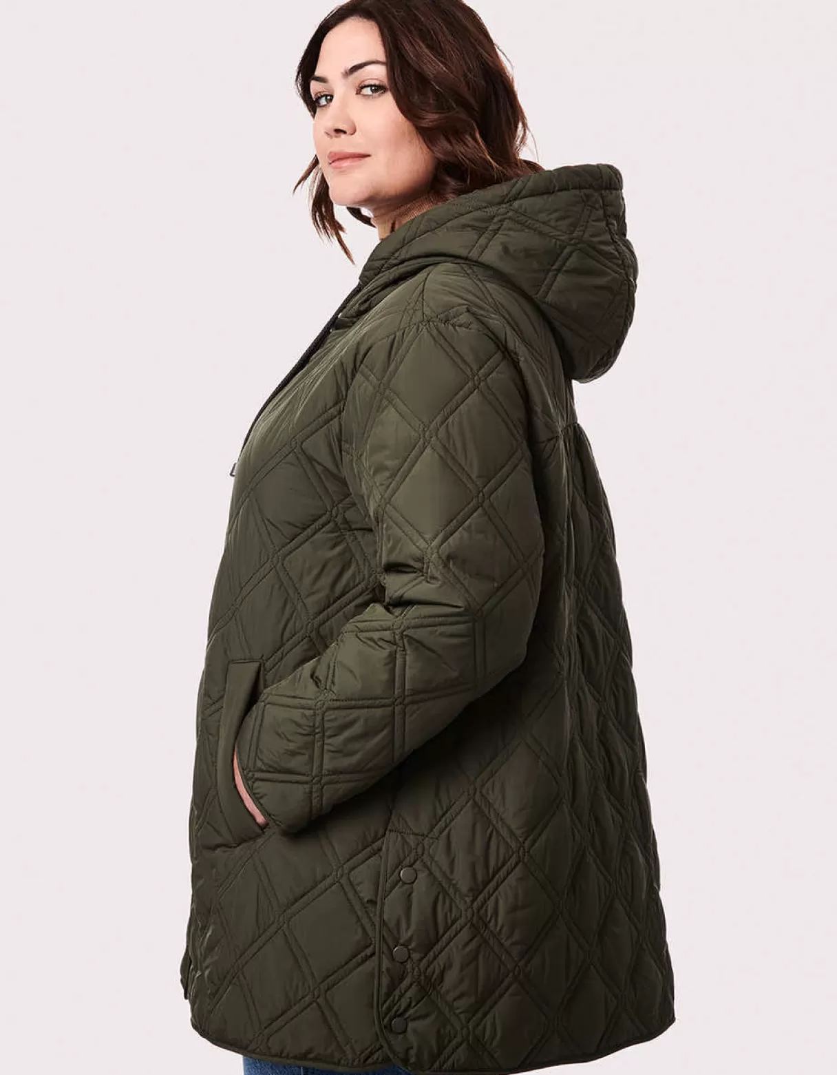 Diamond-Shaped Stitching Defines The Quilted Pattern On This Lightweight Mid-Length Puffer Jacket. The Drawstring Hood K…