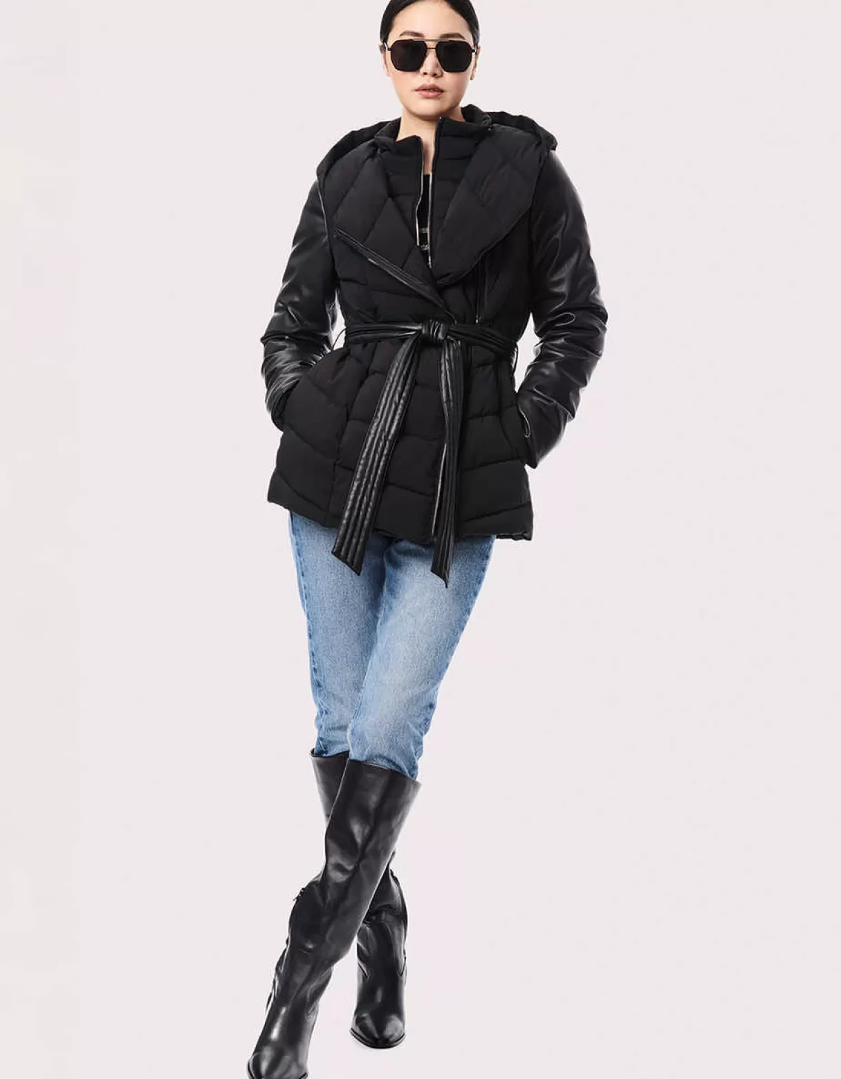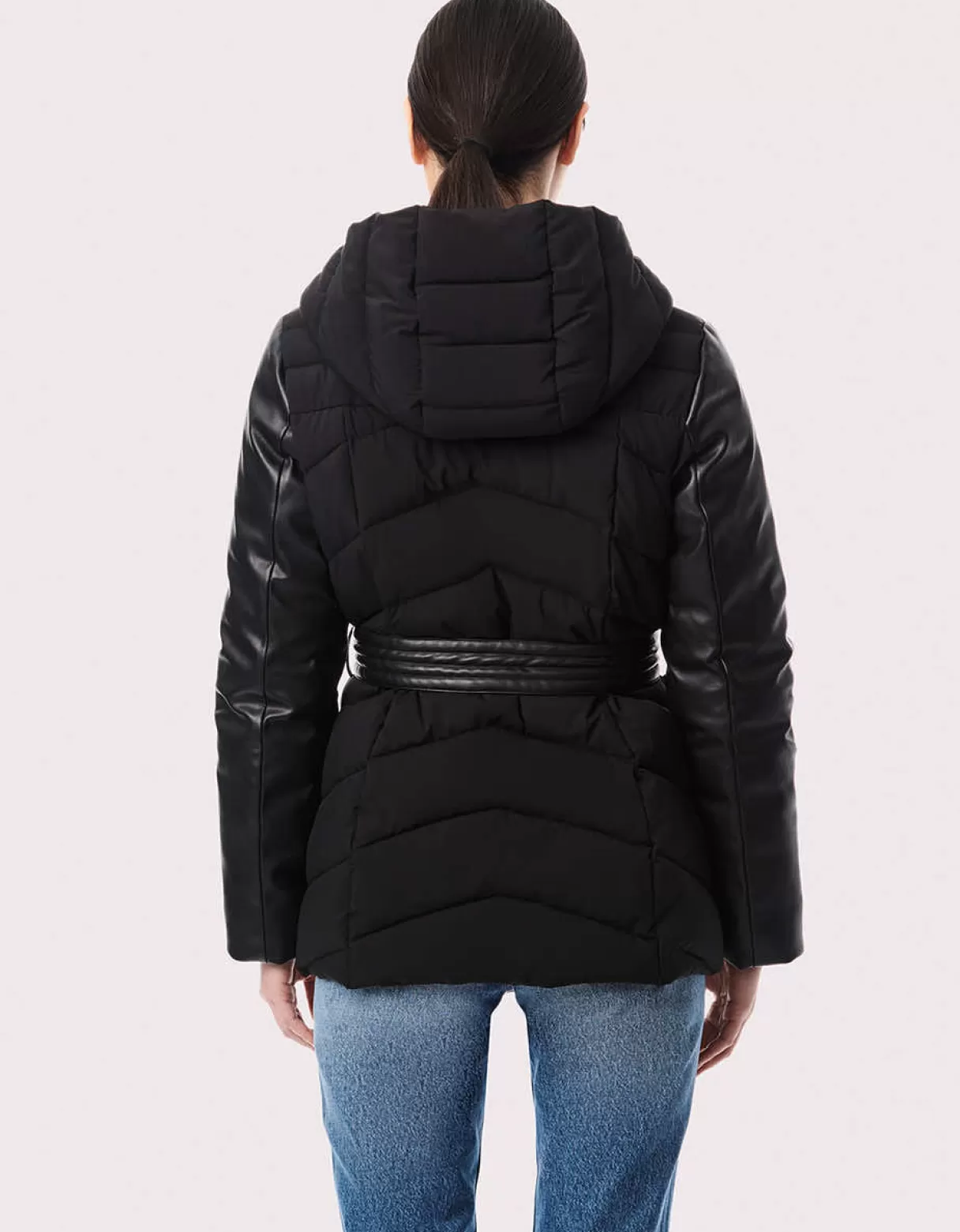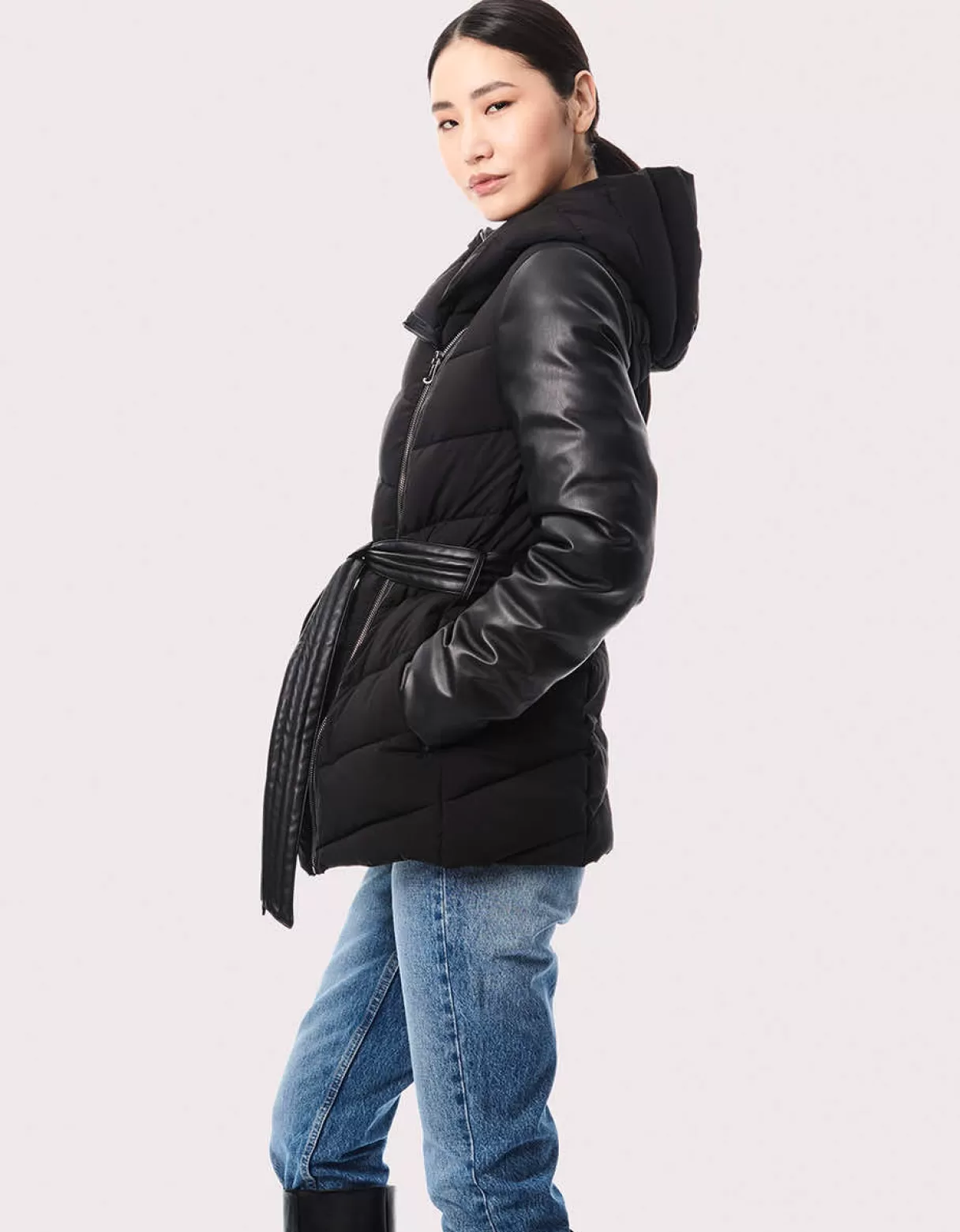 Women Bernardo Fashions Jackets>Modern Mixer Vegan Leather Puffer Jacket