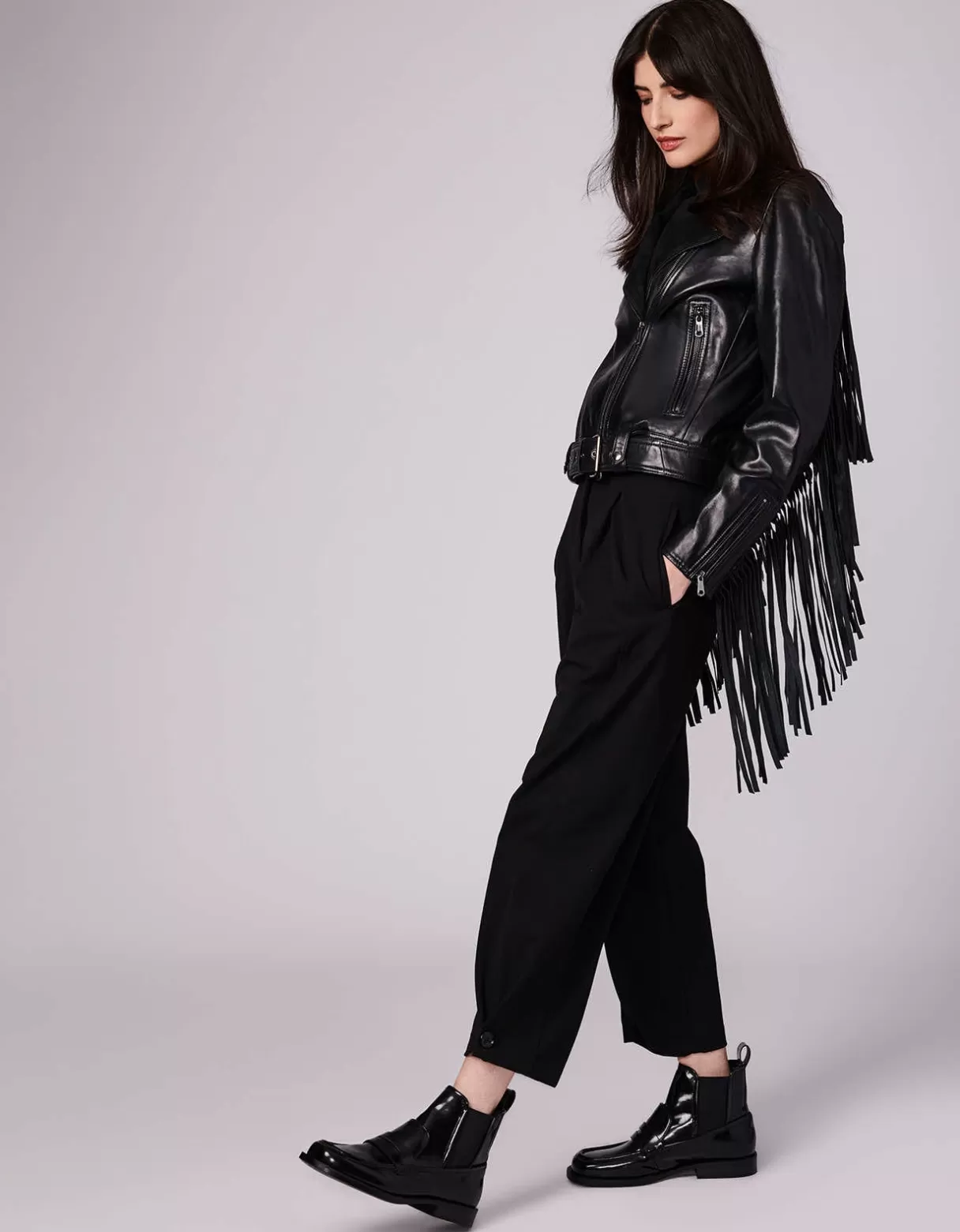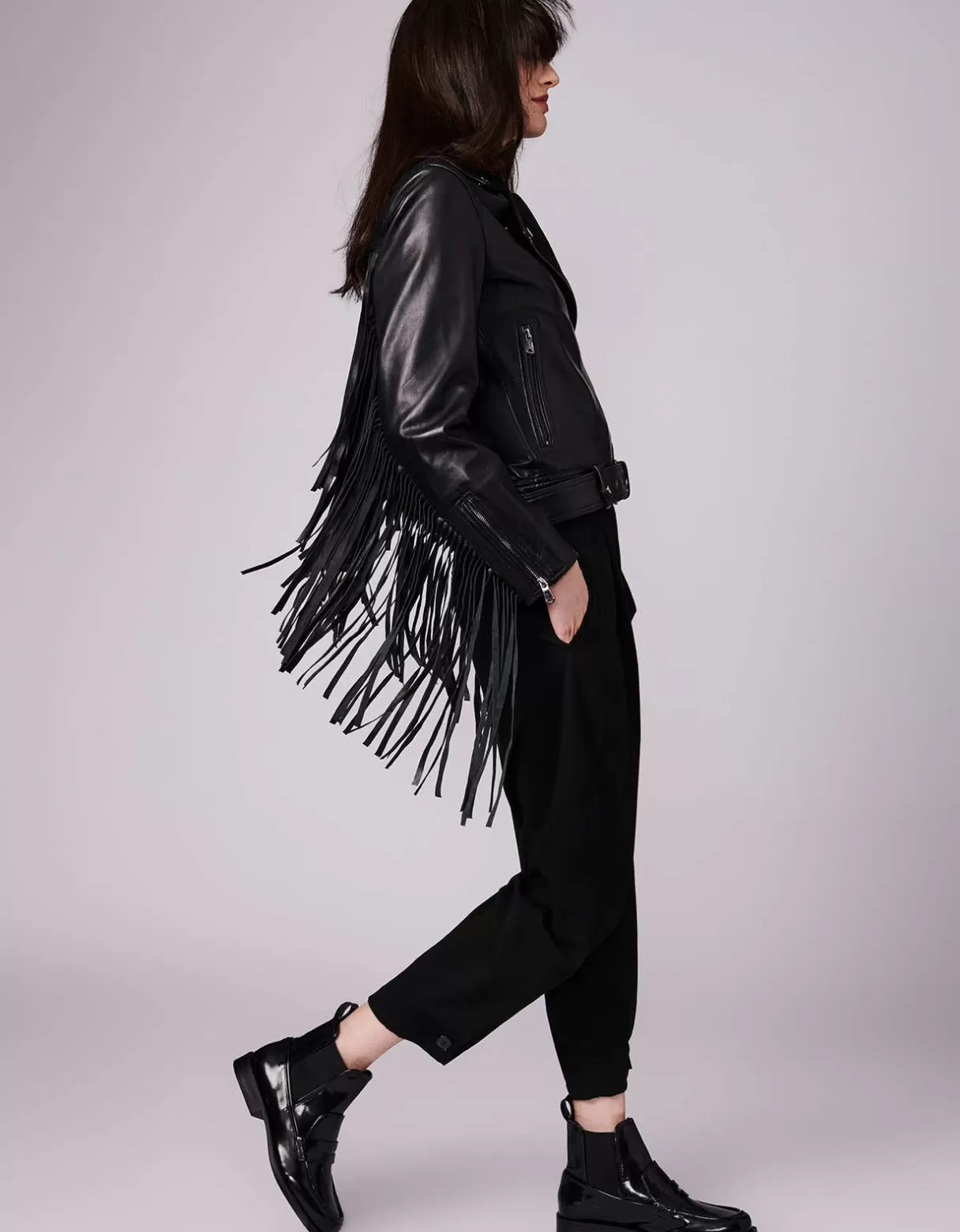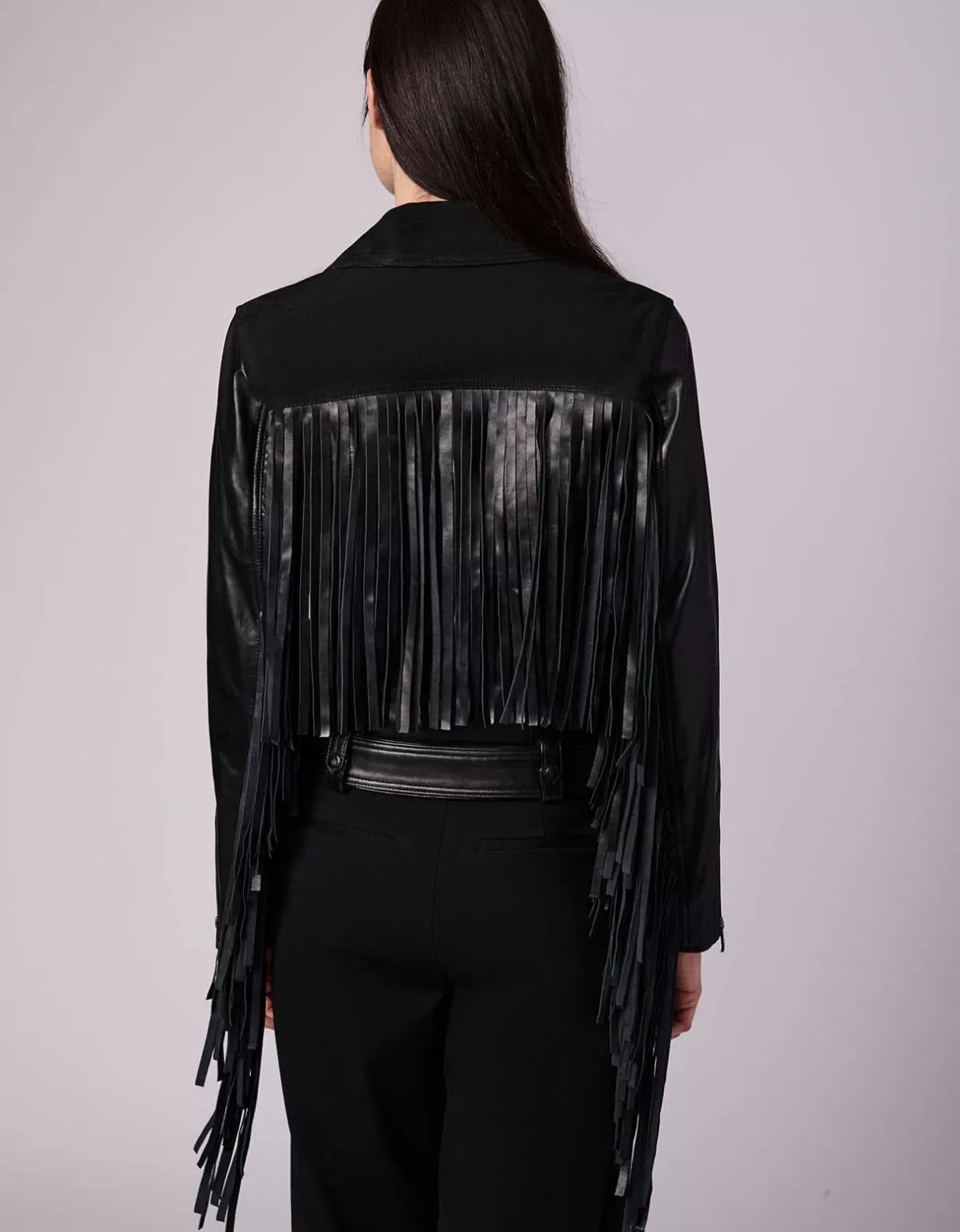 Bernardo Exclusive. So Many Details Make This Genuine Leather Moto Jacket Worthy Of Our Elevated Capsule Collection. It Starts With Extra-Long Fringe On The Back And Sleeves—Have Fun With The Swingy Style. Zippers Everywhere Plus A Buckle Belt With Snaps And Loops Define Its Moto Design. From City Streets To Rooftop Parties, Wear This One For Edgy Appeal.