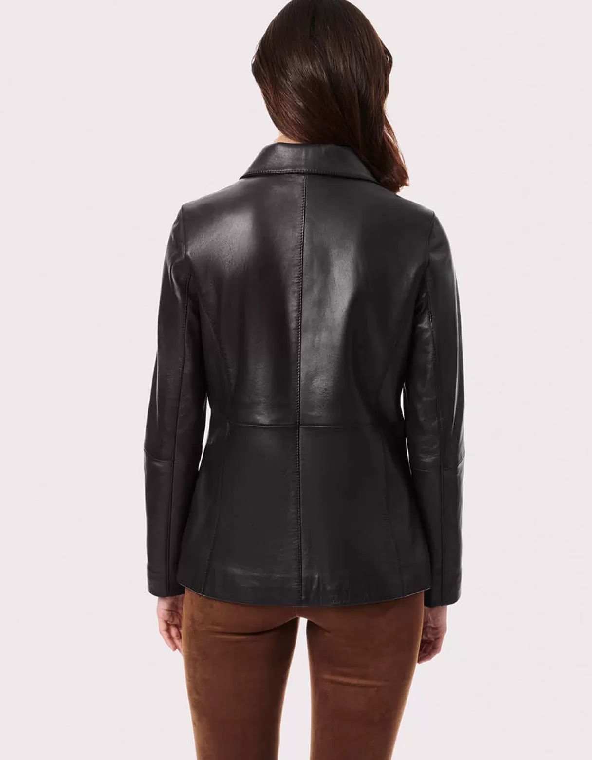 Sleek And Sophisticated, The Flattering Fit Of This Genuine Leather Jacket Makes It A Timeless Wardrobe Staple. The Classic Silhouette Features Subtle Angles For Added Detail, Like Where The Slant Of The Welted Pockets Meets A Center Seam. Bold Buttons And Sleeve Zippers Finish The Effect.