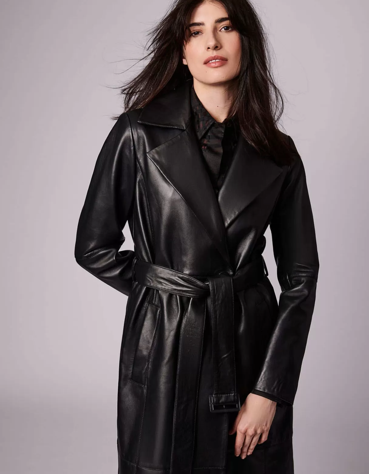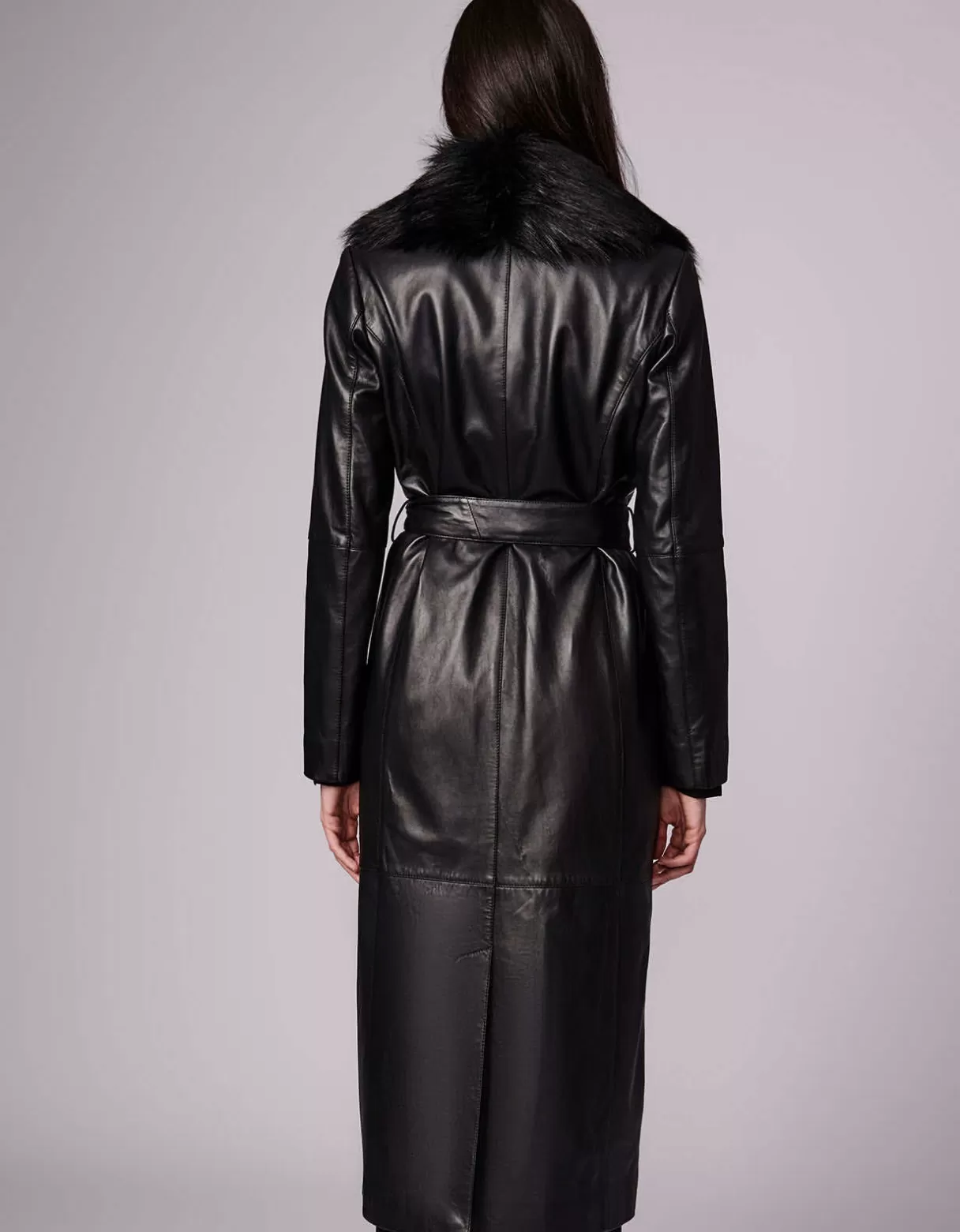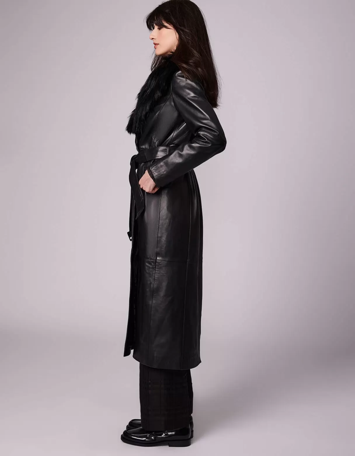 Bernardo Exclusive. The Versatile Side Of Luxe Presents Two Looks In One. Genuine Leather Andfaux Fur Come Together For Multiple Styling Options And A Style Surprise: The Faux-Fur Shawl Collar Detaches By Way Of Buttons. Wear The Long Leather Coat As A Sleek Belted Design For Fall And Winter, Or Add Extra Glam For Rsvp Events.