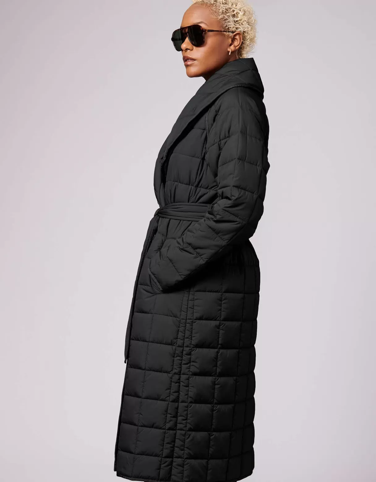 Bernardo Exclusive. Warm, Water-Resistant And Made With 100% Recycled Materials, This Long Puffer Coat Has Eco Bragging Rights For Fall And Winter Wear. Four Hidden Snaps Close It Up, While The Belt Streamlines The Relaxed Fit Of The Silhouette. The Quilted Block Pattern Is Classic Puffer Adding A Geo Aesthetic.