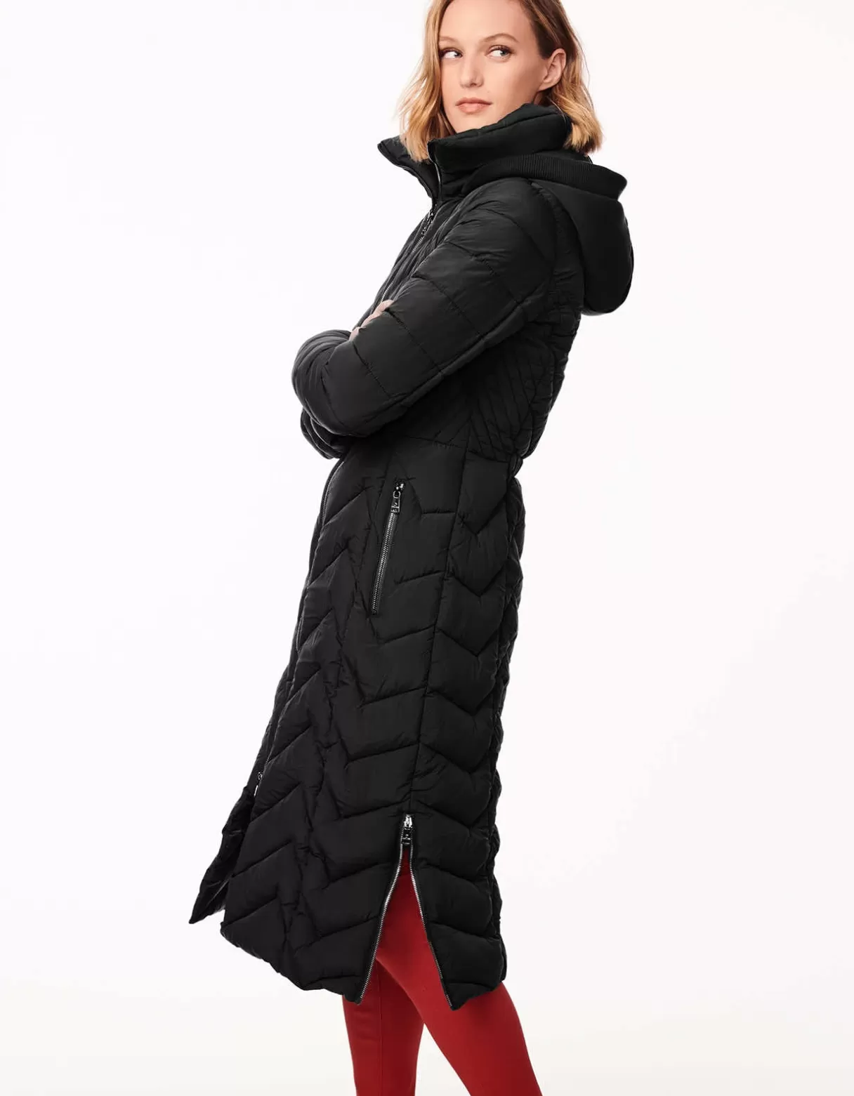 Women Bernardo Fashions Long Coats>Chevron City Long Puffer Coat