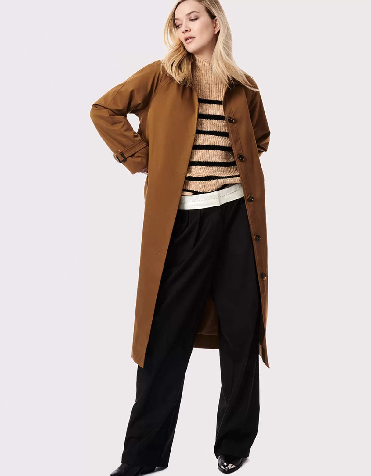 Weather The Storms In This Long Trench Coat Made For Rain And Moisture. Customize The Water-Resistant Design With How You Style The Belt. Cinch The Cuff Buckles To Keep Extra Dry. The Classic Fit Comes In A Fully Lined Knee Length With Button Closure, Hand Pockets And An Inverted Box Pleat.