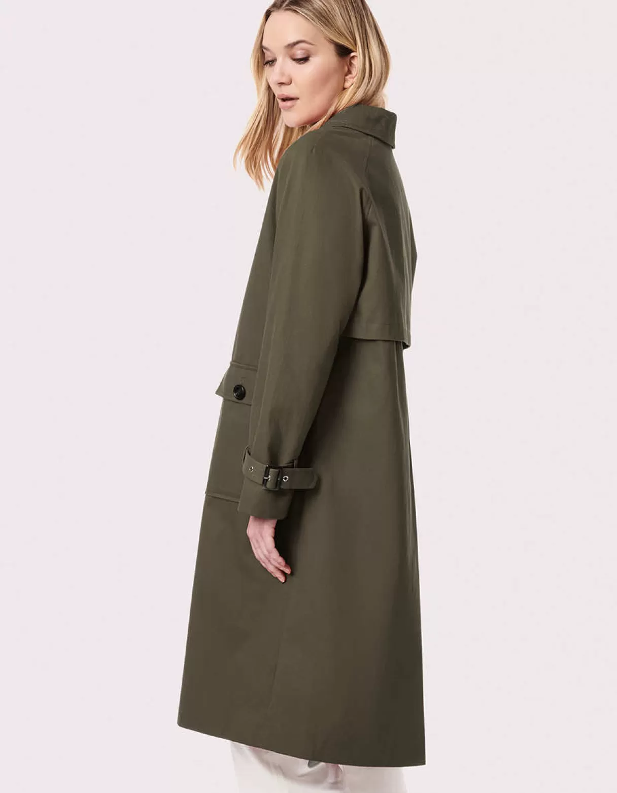 This Long Coat Crafted In Pure Cotton Comes With Oversized Double-Duty Pockets — 2-Way Entry Through The Top Flap And Side Welt — Bold Buttons And Cinching Detail At The Cuffs. The Back Vent Enhances The Longer Walking Length.