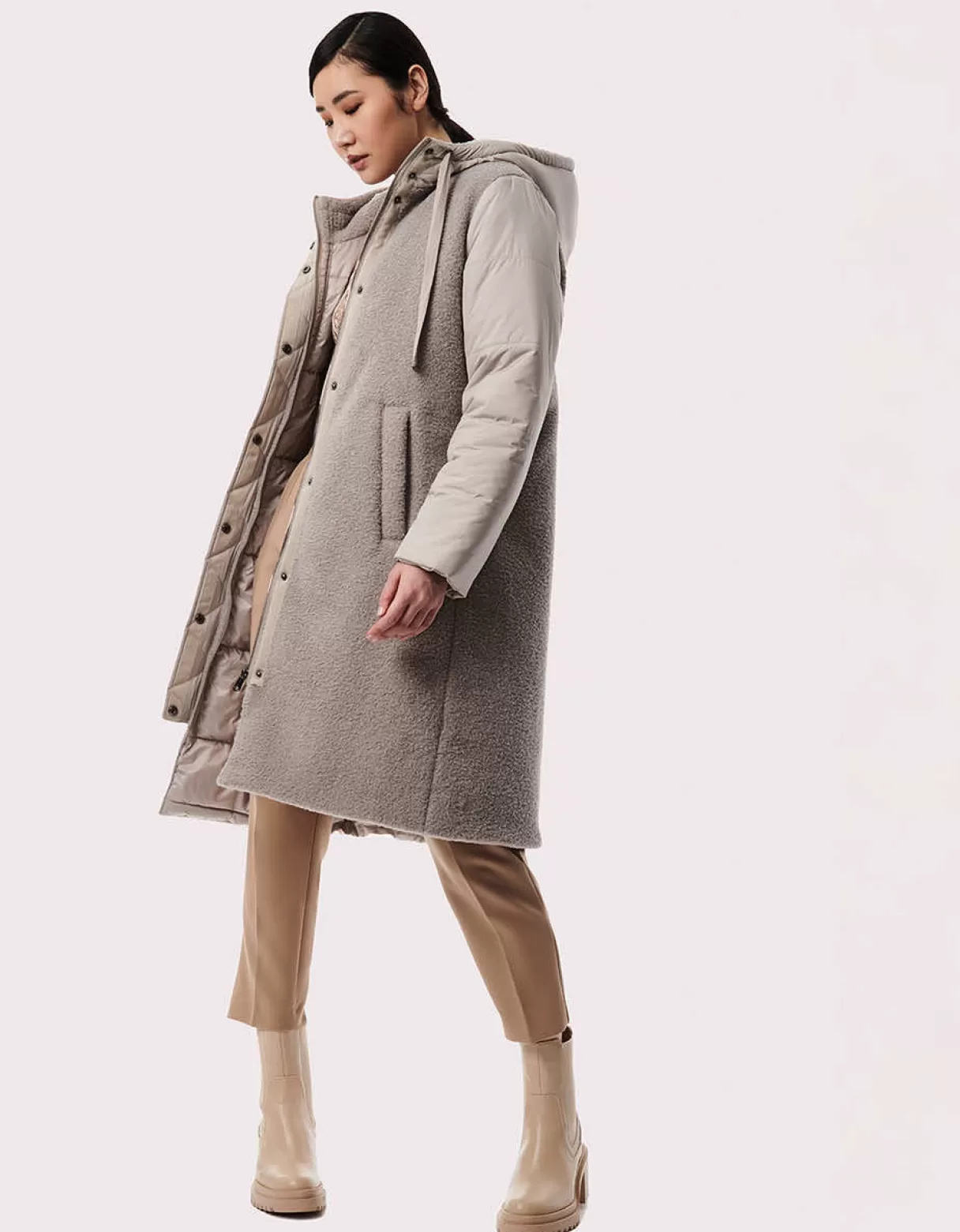 Vegan Fur, Puffer Style And Our Signature Eco-Friendly Insulation Come Together For A Walker Coat With Superior Warmth Without The Bulk. A Drawstring Hood, Snap Styling And Cozy Hand Pockets Complete The Design Details. In A Knee Length And Fabric Mix, It’S The Perfect Way To Make A Statement With Your Winter Outerwear.