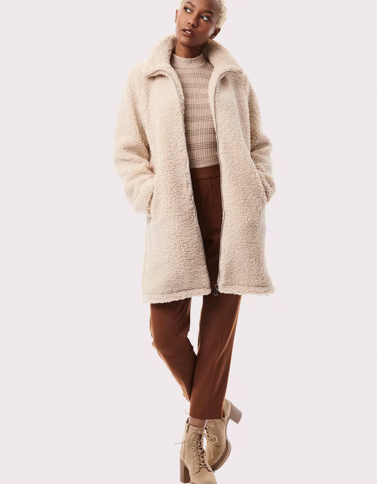 Snuggle Up In The Touchable Texture Of This Roomy Vegan Fur Coat. The Animal-Friendly Style Gives Warmth Through The Fall And Winter In An Effortless Design That Lets You Layer With Side Zippers That Let You Move.