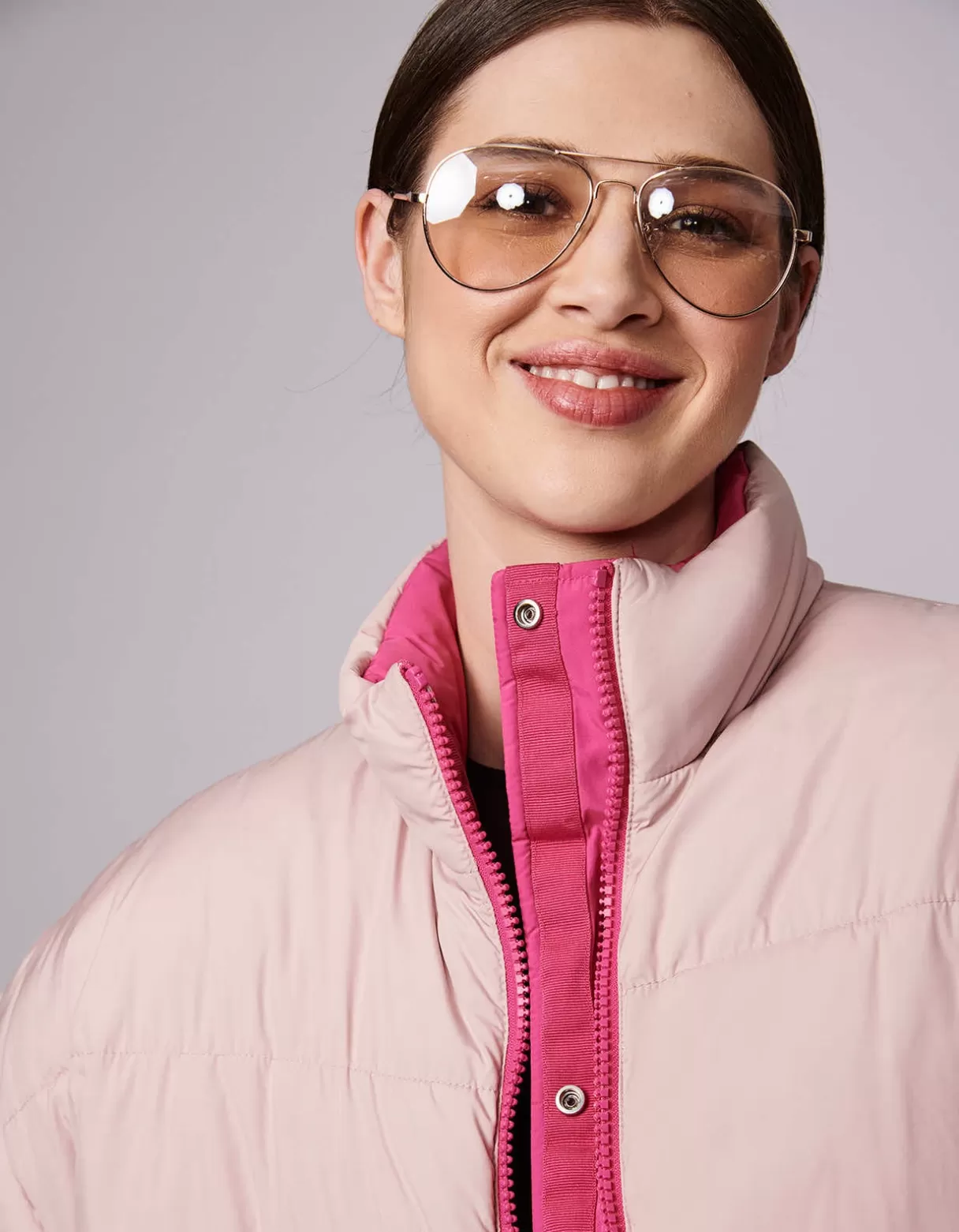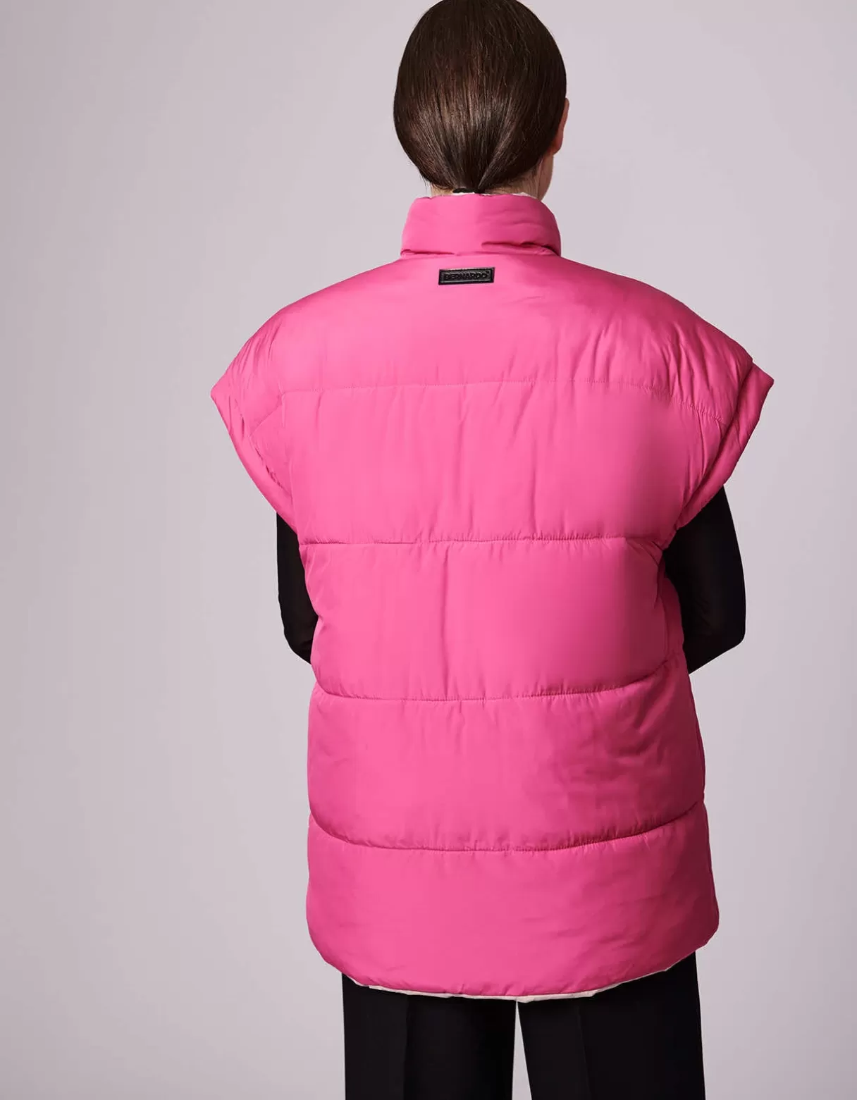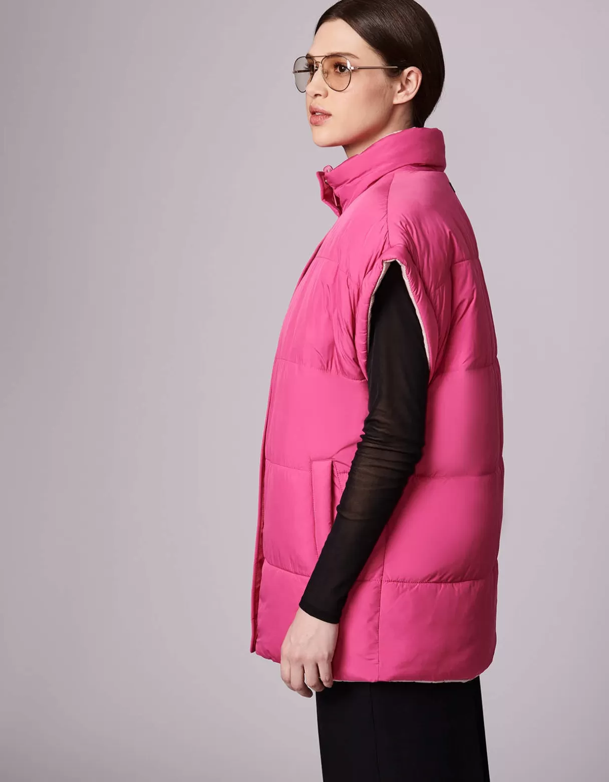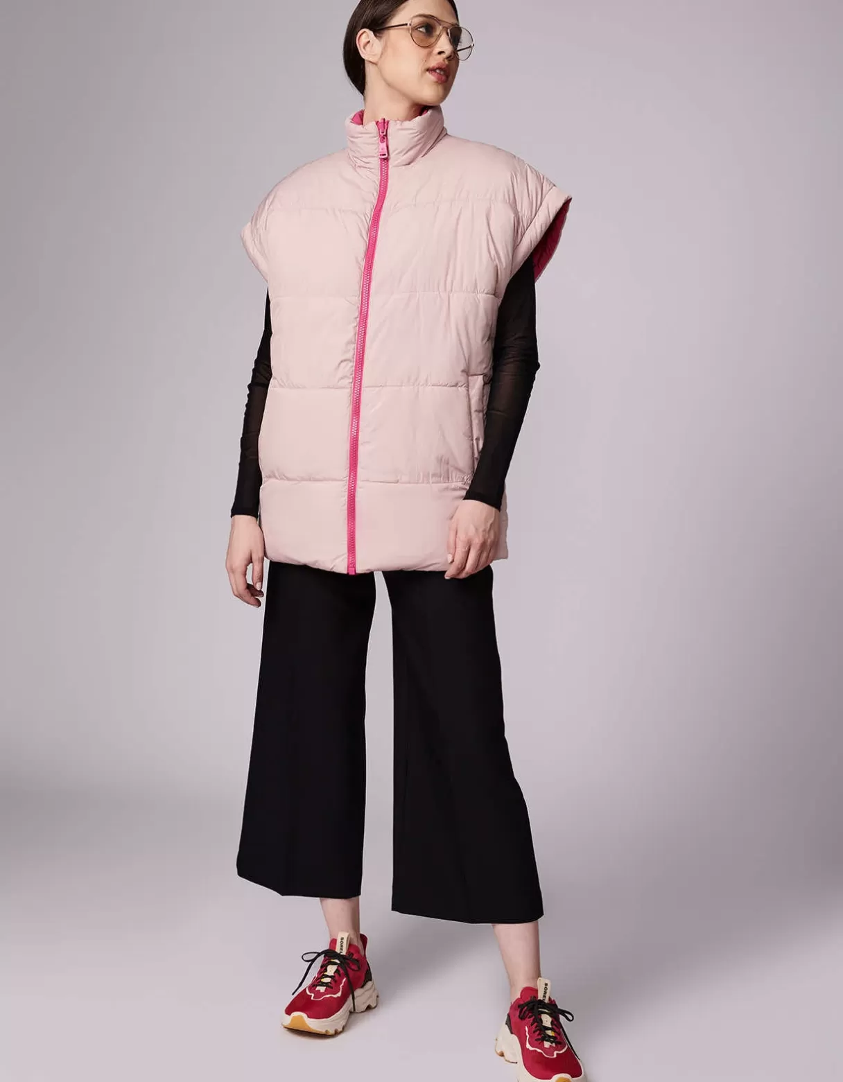 Bernardo Exclusive. Designed In Honor Of Breast Cancer Awareness Month, This Vest Is A Symbol Of Warmth, Comfort And Unity – A Wearable Embodiment Of Hope. Every Purchase Of Our Breast Cancer Awareness Reversible Puffer Vest Contributes To Our Unwavering Commitment To The Cause. A Reversible Design With Two Puffer Vests In One— Featuring A Vibrant Pink Or A Soft Desert Rose For You To Switch Up And Style As You Please. The Oversized Fit Hits Below The Hip And Gives Plenty Of Room To Move And Layer. The Water-Resistant Puffer Vest Has A Funnel Collar For Extra Coverage From Cool Breezes, And Is Fully Made From Recycled Materials So You Can Go Guilt-Free In The Sustainable Style.