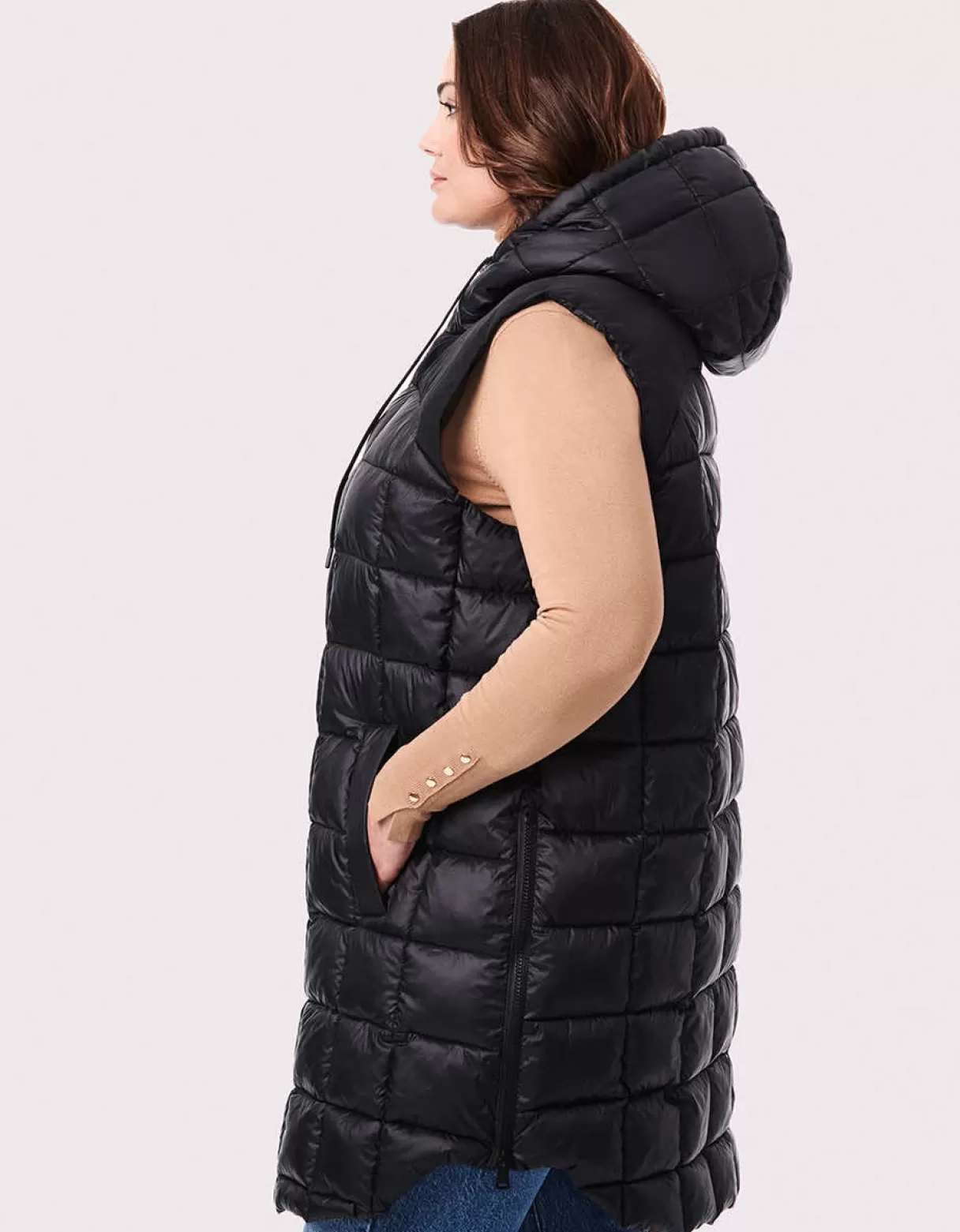Women Bernardo Fashions Vests>Square Hooded Puffer Vest – Curve