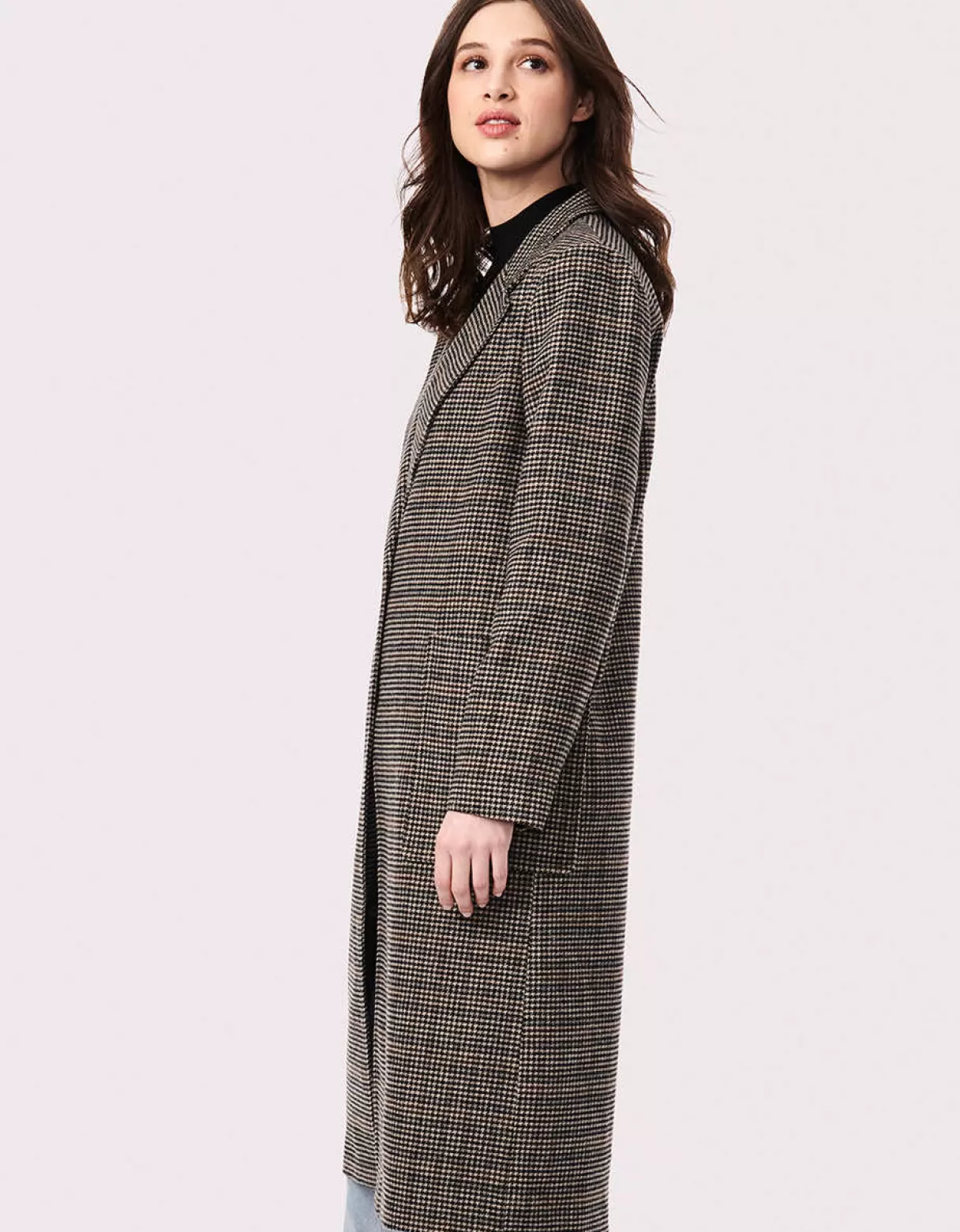 Refresh Your Outerwear In A Longer Wool Coat With Iconic Houndstooth Style. The Oversized Fit Gives Room To Move And Layer, While The Classic Lapel And Single Button Closure Keep The Design Lines Clean And Streamlined. Keep Keys, Cards Or Phone In The Ample Patch Pockets For Quick Access When On The Go.